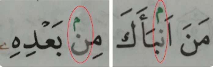 - مِن بَعْدِ (Min Ba’di) – Pronounced as Mim Ba’di, where the Noon Sakinah changes into a Meem.
