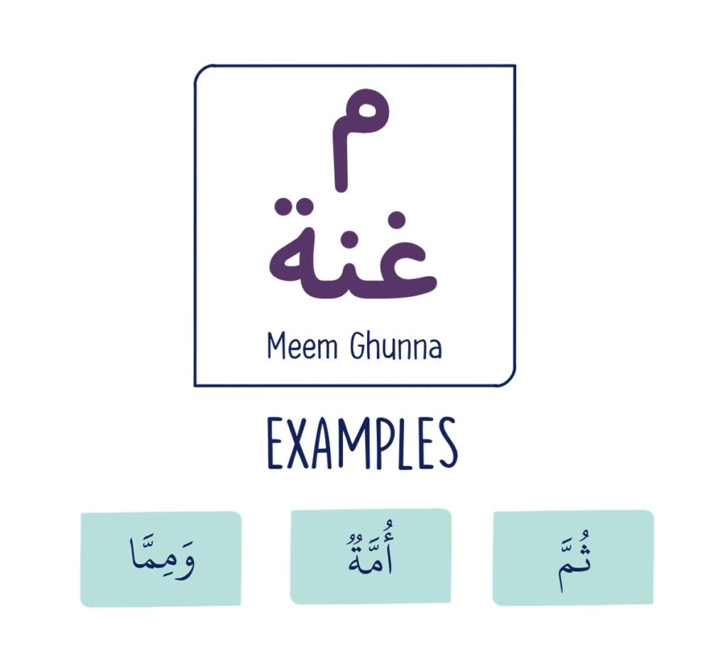 - The Meem is pronounced with Ghunnah, producing a soft nasal sound held for two counts.